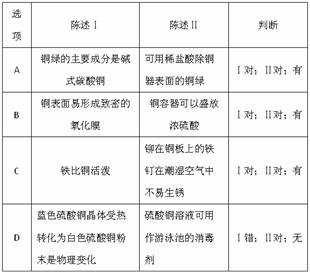 (5)下表中,对陈述Ⅰ、Ⅱ的正确性及其有无因果关系的判断都正确的是 (填字母)。