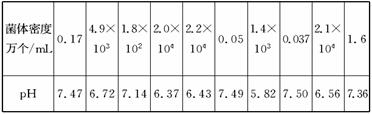 4.制药厂引进了能够合成人α-干扰素的某大肠杆菌品系,在适宜的培养基中接入适量菌种,培养3h后开始取样并在此后每隔3h取样一次,测定并记录细菌种群密度和培养基pH。下表数值记录无误,但记录顺序不慎弄乱。据此表格的有关分析,不正确的是