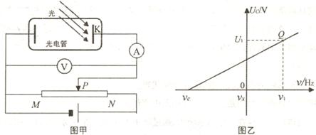 的关系,描绘出图乙中的图象,由此算出普朗克常量