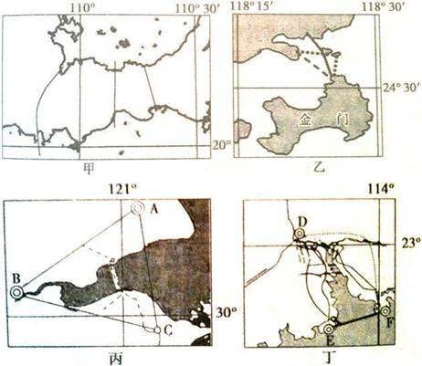(3) 填出图丙、丁中字母代号所对应的城市名称:(12分)
