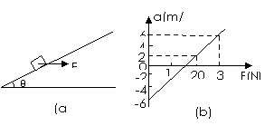 浙江省温州市十校联合体2010届高三期中联考如图(a)所示,用一水平外力F拉着一个静止在倾角为θ的光滑斜面上的物体,逐渐增大F,物体做变加速运动,其加速度a随外力F变化的图像如图(b)所示,若重力加速度g取10m/s2.根据图(b)中所提供的信息可以计算出( AB )