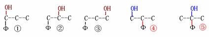 第二步:在定位了-Ф苯基所得到的二式中,分别变换-OH在碳链上的位置,得①-⑤