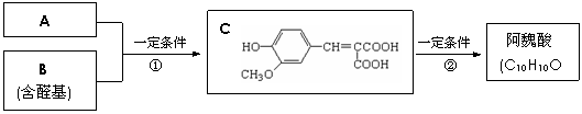 23、A与芳香族化合物B在一定条件下反应生成C,进一步反应生成抗氧化剂阿魏酸。