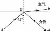 14.如图所示,细光束AO以45°的入射角从某种介质射向空气时,分成a、b两束,a光频率为ν1,b光频率为v2。关于这两种单色光,下列说法中正确的是