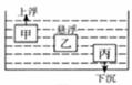 如图6所示,质量相同的甲、乙、丙三个物体浸没在水中。甲上浮、乙悬浮、丙下沉,在甲露出水面之前,关于它们所受浮力的说法