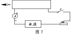 9、如图7电路连接正确,通电后小磁针指向如图7所示(涂黑端表示N极),请在图中标出电源的“+”、“-”极,并