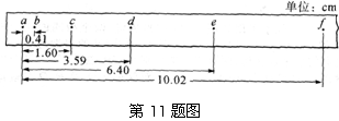 32、(1)将打点计时器固定在斜面上某处,一小车拖着穿过打点计时器的纸带从斜面上滑下,如图所示是打出的纸带的一段.当电源频率为50 Hz时,每隔0.1 s取一个计数点,它们是图中a、b、c、d、e、f等点,这段时间内加速度的平均值是____________(取两位有效数字).若电源频率高于50Hz,但计算仍按50Hz计算,其加速度数值将____________ (填“偏大”、‘‘偏小’’或“相同”).