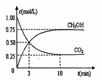 (3)随着人类对温室效应和资源短缺等问题的重视,如何降低大气中CO2的含量及有效地开发利用CO2,引起了各国的普遍重视。目前工业上有一种方法是用CO2来生产燃料甲醇。为探究反应原理,现进行如下实验,在体积为1 L的密闭容器中,充入lmol CO2和3mol H2,一定条件下发生反应:
