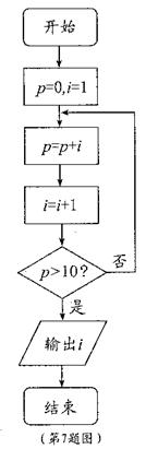 7.某程序框图如图所示,则该程序框图输出i的值等于 ( )