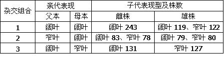 13.某雌雄异株植物,其叶型有阔叶和窄叶两种类型,由一对等位基因控制。现有三组杂交实验,结果如下表。下列有关表格数据的分析,错误的是