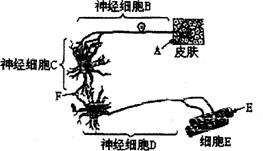 D.直接刺激E处,肌肉细胞E收缩,不属于反射活动