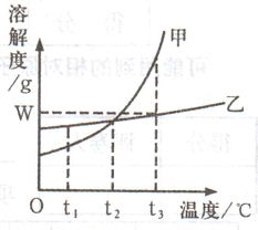 2)甲、乙各W g分别加入到两只盛有100 g水的烧杯中,充分搅拌,在t3 ℃时所得乙溶液为 (填“饱和”