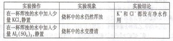 [查阅资料]明矾[化学式:KAl(SO4)2·12H2O]是一种常见的净水剂,它在水中解离出的离子主要有K+、Al3+、SO42+。