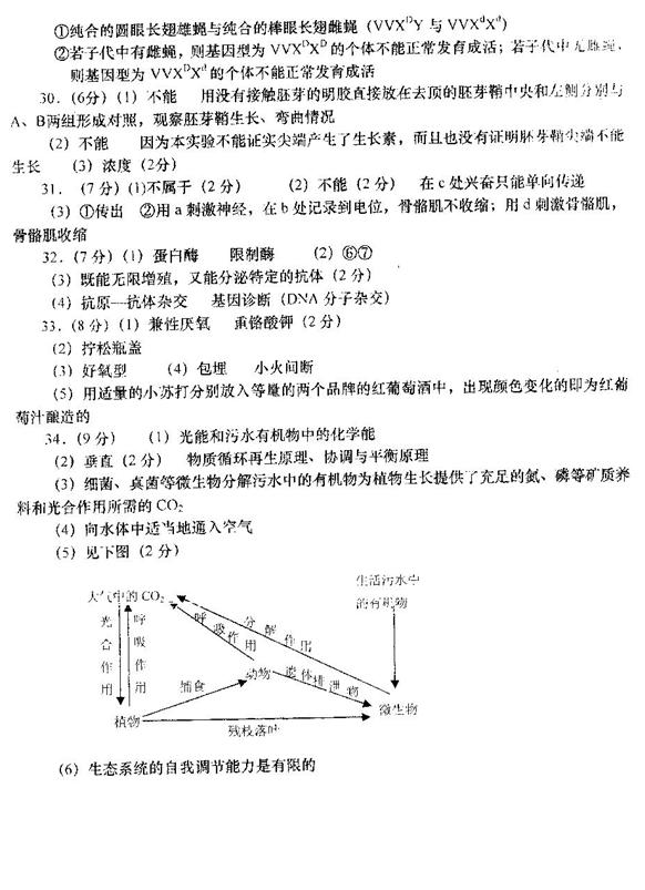 34.(9分)某城市在建设过程中,更加注重生态文明的建设。如利用人工建立的湿地公园对生活污水进行净化处理,形成藻菌共生的污水净化系统,还可以利用藻类蛋白养鱼、养鸭等而获得良好的经济效益。下面是利用人工湿地净化生活污水的原理简图。请据图回答问题: