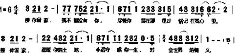 67.(1分)海地地震发生后,功夫巨星成龙和谭晶演唱的为维和英雄创作的歌曲《接你回家》表达了对英雄的怀念和哀思,迅速走红。观察曲谱,拍子有开始的“4/4”转换成“2/4”,我们称这种拍子为 。