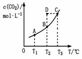 CO2(g)+H2(g)。CO2(g)的平衡物质的量浓度c(CO2)与温度T的关系如右图所示。