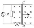 ,质量m=0.10kg的金属棒CD垂直放在水平导轨上,导轨由两条平行金属杆组成,已知金属杆表面光滑且电阻不计,导轨间距也是L,金属棒与导轨接触良好,量程为0-3.0A的理想电流表串联接在一条导轨上,在导轨左端接有阻值