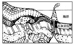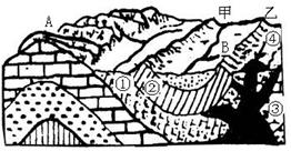 A.①泥沙沉积 B.②岩层断裂