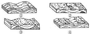 18.图中①、②、③、④所示地质或地貌的成因正