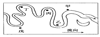 26.在上图中河岸两侧兴建房屋,随着河流的不断发育,其中有地基被掏空的可能的是( ) A、甲乙 B、甲戊 C、乙丙丁 D、丙丁戊