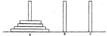 柱上,要求每次只能搬动一个,而且任何时候不允许将大盘套在小盘上面,假定有三根柱子