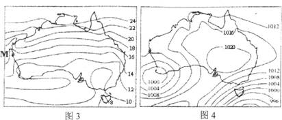 读某大陆某月等温线(℃)图3和该月海平面等压线(hPa)图4,回答5-7题。