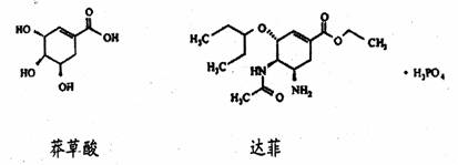 7. 达菲(Tamiflu)被认为是目前世界上公认的能够治疗人禽流感病的唯一有效的药物,它是由我国特有中药材八角的提取物--莽草酸(shikimicacid)为原料合成的。已知莽草酸和达菲的结构式如下:( )