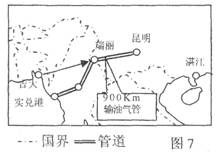 (6)南线方案从中东进口石油,一部分海运到印度洋港口,再由管道输往云南,说明这种运输方式与运输线路与原有的方式和线路(海运至湛江港口进行集散)相比的好处。(6分)