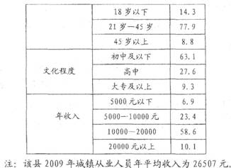 38.(30分)材料一:2009年我国某县农村外出从业劳动力情况统计表(单位:%)