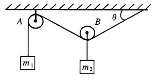 15.如图所示A为定滑轮,B为动滑轮,不计滑轮及绳的质量,θ角已知。当系统平衡时,下列关于两物体质量m1与m2之间的关系正确的是