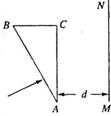 它对红光的折射率为n1,对紫光的折射率为n2,在距AC 边d 处有一与AC平行的光屏,现有由以上两种色光组成的很细的光束垂直AB边射入棱镜。