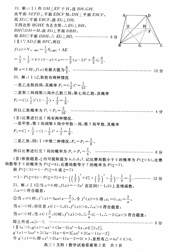 恒成立,求实数的取值范围。19.(本小题满分12分)