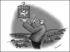 下图描绘的是现在人类面临的窘境。请你根据对下面这幅漫画的理解用英语写一篇短文,描述这种现象,说明其产生的原因及后果,并发表你的看法。