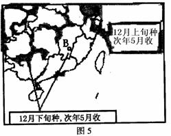 材料二 浙江温岭的农民彭友达以及他领导下的西瓜专业合作社这些年来一直在全国上下“追着太阳种西瓜”,如图5所示。