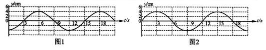 4.一列简谐横波在x轴上传播,已知x=6cm处的质点的振动图象如图1所示,x=18cm处的质点的振动图象如图2所示。根据这两幅振动图象,可获得关于这列简谐横波的确定的和可能的信息,正确的是( )