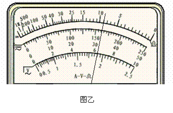 (2) 按正确的操作程序再一次用多用电表测量该待测电阻的阻值时,其阻值如图乙中指针所示,则Rx的阻值大约是_________Ω;