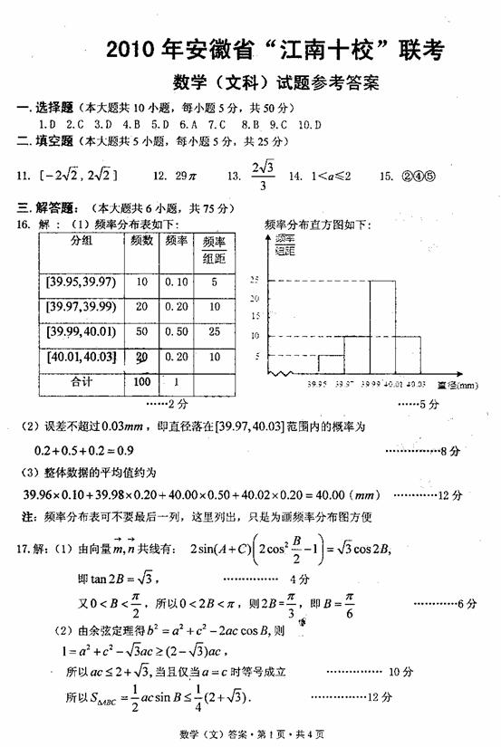 16.(12分)某制造商3月生主了一批乒乓球,随机抽样100个进行检查,测得每个球的直径(单位mm),将数据分组如下: