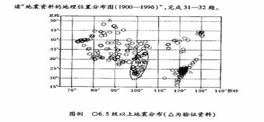 31.板块交界处地壳比较活跃,是地震多发地区,图中甲区域位于