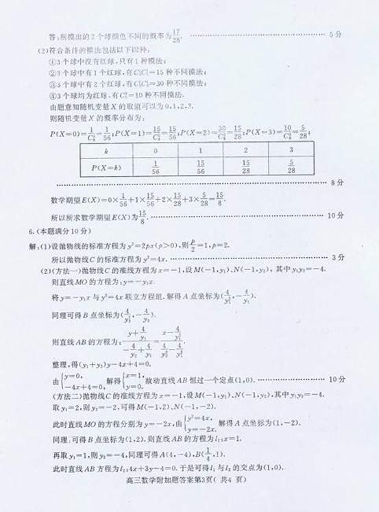 (2)如果从袋中一次摸出3个球,记得到红球的个数为X,求随机变量X的分布概率及数学期望E(X)