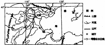 (1)说出天津以西地区等潜水水位线的分布特点及原因。(6分)