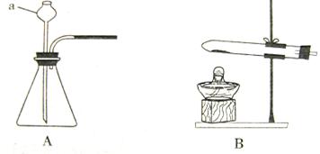 25、(3分)下图A和B是实验室制取气体的两套装置。A装置中仪器a的名称是 ;用A装置可以制取的气体是 (写一种即可);用B装置制取气体时,对应反应物的状态和反应条件的要求是 。