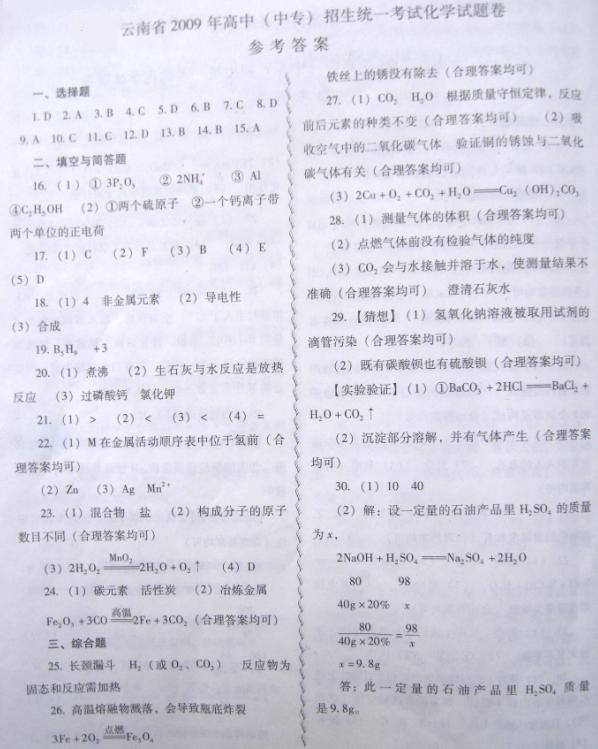 27、(7分)小明同学到博物馆参观,看到在一些古铜器表面有绿色物质。他查阅资料后得知:铜在一定条件下会锈蚀生成一种绿色的物质,其主要成分是碱式碳酸铜,俗称铜绿,化学式是Cu2(OH)2CO3 。