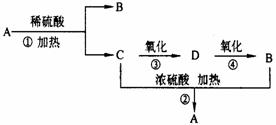 2、(8分)化合物A是一种酯,它的分子式为C4H8O2,有下图转化关系。试回答下列问题。