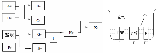 (4)如上方右图所示,F处于Ⅰ、Ⅱ、Ⅲ三种不同的环境中,该金属被腐蚀的速率由快到慢的顺序是(填序号)_______________。