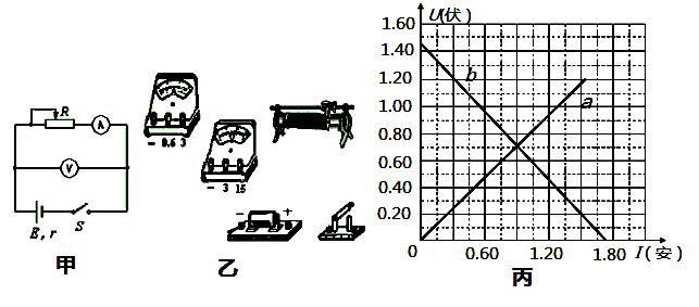 (3)该同学根据实验数据得到图丙中的图象b,则他根据图象b求得电源电动势E= ▲ V,内电阻r= ▲ Ω.