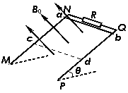 角θ=37°,NQ间连接一个R=4Ω的电阻.有一方向垂直导轨平面向上的匀强磁场,磁感应强度B=1T.将