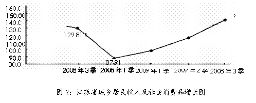 曲线3表示江苏社会消费品零售总额与去年同比增长(%)