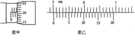 21.1)(6分)某学生用螺旋测微器在测定某一金属丝的直径时,测得的结果如图甲所示,则该金属丝的直径d= mm。另一位学生用游标尺上标有20等分刻度的游标卡尺测一工件的长度,测得的结果如图乙所示,则该工件的长度L= cm。