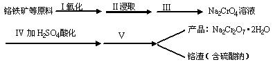 (1)实验室中红矾钠可用铬铁矿(主要成分:FeO·Cr2O3)利用以下过程来制取。
