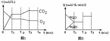 ② 图1、图2表示该反应在t1时达到平衡,在t2时因改变某个条件而发生变化的曲线:由图1判断,反应进行至t2 min时,曲线发生变化的原因是